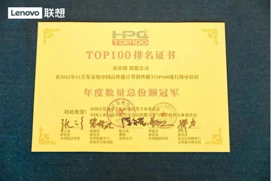 在高性能计算领域,联想长期占据领先地位。截至2023年5月,联想服务器已斩获463项性能测试世界纪录。此外,在2023年5月德国汉堡ISC2023上发布的全球性能最强的500台科学计算集群中(以下简称全球算力500强榜单),联想169套入围的成绩,第11次蝉联榜单榜首。