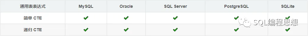 一般来说,我们只能通过应用程序或者存储过程实现这些复杂的功能。但是有了 CTE,我们可以直接利用一个 SQL 语句完成以上功能。CTE 不仅强大而且通用,各种主流数据库都提供了支持。