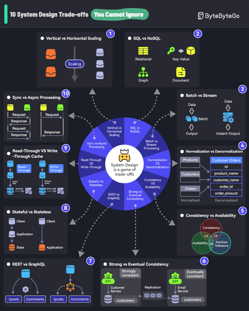在系统设计中,每个决策都会带来取舍。让我们深入探讨 10 个常见的系统设计权衡,并讨论它们的影响。