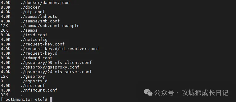 执行如下命令,列出当前目录下的所有文件夹的容量。