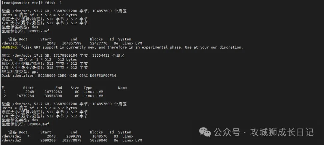 要了解系统中磁盘的基本信息,可以使用以下命令: