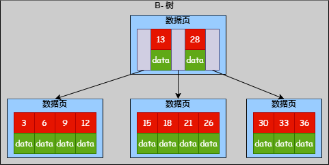 跟 B+ 树不一样的是,B- 树所有节点都可以存储数据,包括根节点,内部节点,叶子节点。