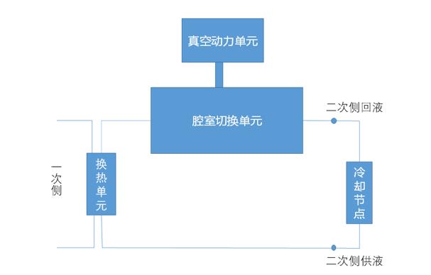 在压差作用下,“水往低处流”,冷却液由高液位腔室流出,途经换热器和冷板后,流入低液位腔室中。在此流动过程中,原来低液位腔室中的冷却液逐渐上涨触及液位传感器,于是新一轮的循环又将开启,如此循环往复,冷却液不断在不同腔室间流动切换,实现了液环式真空CDU负压液冷系统的稳定运行。