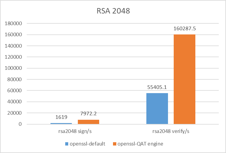非对称加密算法:RSA, ECDSA, ECDHE对称加密算法:AES-GCM(128,192,256)注:QAT加速的优势主要体现在非对称加密上,从官方的整体性能数据看,非对称算法性能提升1.6~2倍,对称算法性能提升10%~15%