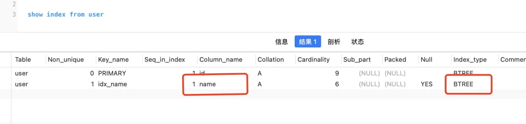 对name字段建立Hash索引,但是通过show index from 表名就会发现实际还是B+树