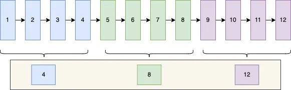 这里我假设每4条数据算一个组,图上就有3个组,组分好之后,mysql会取出每组中最大的id值,就是图中的4、8、12,放在一起,在数据页中找个位置存起来,这就是前面提到的数据页存储的额外信息之一,被称为页目录