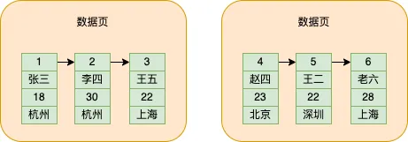 前面提到的数据页,其实真正是叫索引页,因为叶子节点存的是实际表的数据,所以我就叫数据页了,接下来因为真正要讲到索引了,所以我就将二级索引的页称为索引页,你知道是同一个,但是存储的数据不一样就可以了。