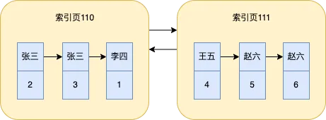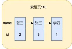 mysql会根据name字段的值进行排序,这里我假设张三排在李四前面,当索引列的值相同时,就会根据id排序,所以索引实际上已经根据索引列的值排好序了。