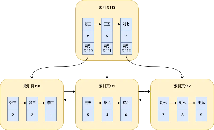 当数据不断增多,一个索引页存储不下数据的时候,也会用多个索引页来存储,并且索引页直接也会形成双向链表。