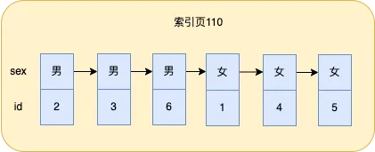 举个例子,假设现在有个性别字段sex,非男即女,如果对sex建索引,假设男排在女之前,那么索引页的数据排列大致如下: