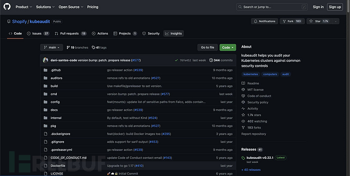 5. KubeauditKubeaudit是一款安全审计工具,可确保Kubernetes集群安全配置。由Shopify开发,它自动化了审计Kubernetes资源的过程,专注于安全最佳实践和合规性。