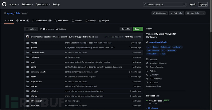 6. ClairClair是一款开源容器漏洞扫描器,旨在分析容器镜像并检测其软件包中的已知漏洞。由CoreOS开发的Clair与容器注册表集成,自动扫描镜像并生成漏洞报告。