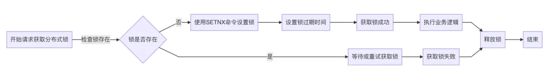 使用Redis的SETNX命令实现分布式锁的获取和释放,通过Lua脚本确保释放锁时的原子性,并在执行业务逻辑前尝试获取锁,业务逻辑执行完毕后确保释放锁,从而保证在分布式系统中对共享资源的安全访问。