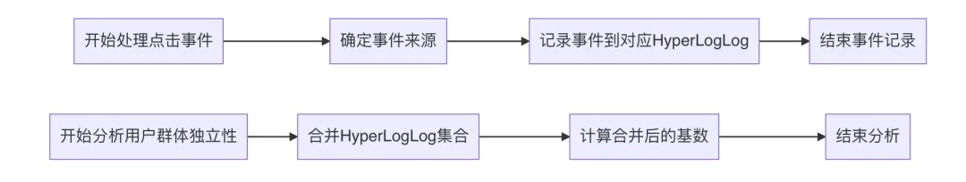 事件独立性分析:HyperLogLog可以用于分析不同事件的独立性,例如,不同来源的点击事件是否来自相同的用户群体。
