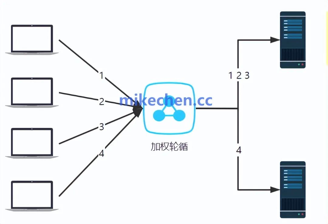 适用于服务器性能不均等的情况,比如:一些服务器性能较高,能够处理更多请求,而其他服务器性能较低。
