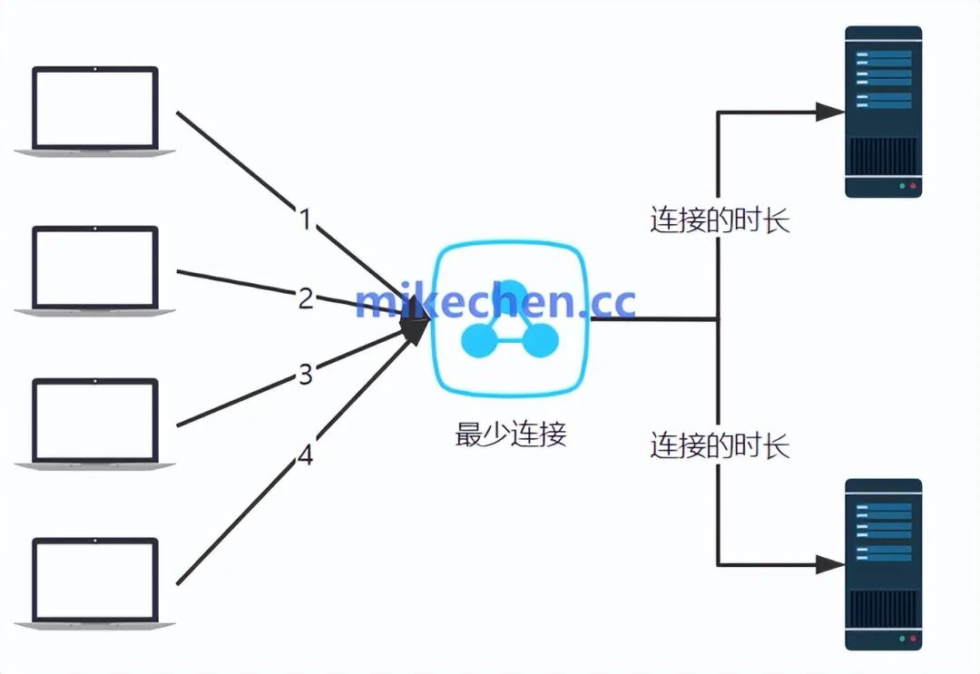 将请求分配给当前连接数最少的服务器,即选择处理请求数量最少的服务器。