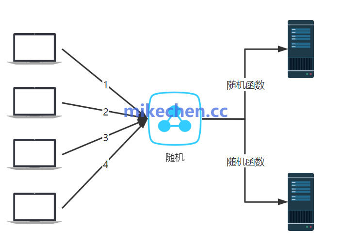 随机选择一个服务器来处理请求,不考虑服务器的当前负载或性能。