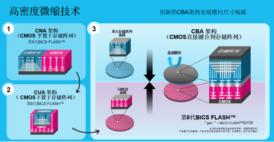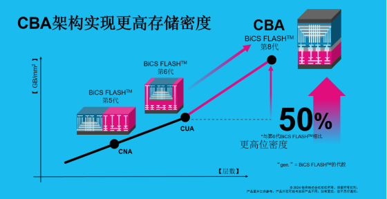 由于在第八代BiCS FLASH中导入了CBA架构而使千兆位密度得到了大幅度的提高