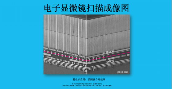 图中的粉色线表示贴合面,上部为存储单元阵列,下部为CMOS电路