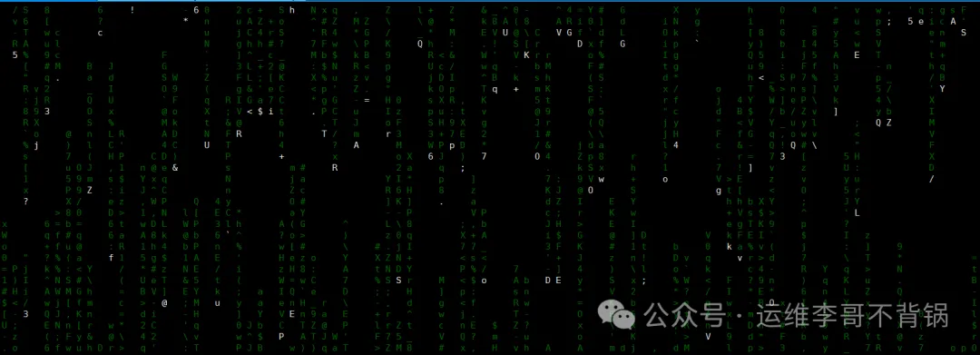 这个命令是模拟《黑客帝国》中的字符流,有非常酷炫且神秘的屏幕效果。