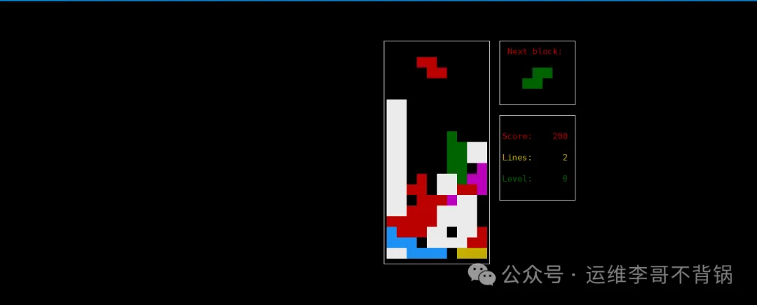 安装完成后,直接输入 bastet 命令即可启动游戏: