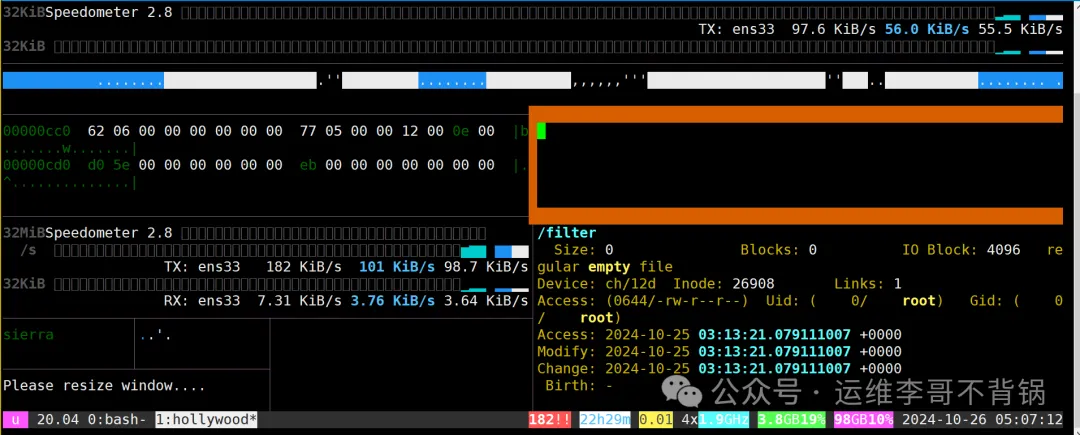 Hollywood 是一个在Ubuntu上非常有趣的“假装忙碌”工具,通过在终端中显示各种炫酷的代码效果,模拟一系列黑客界面效果。