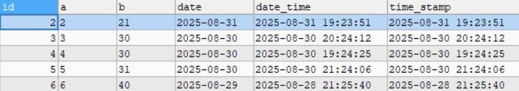 SELECT * FROM test3 WHERE date_time BETWEEN 2025-08-28 AND 2025-08-31;1.