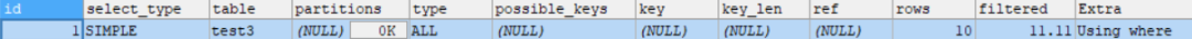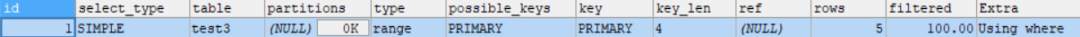 EXPLAIN SELECT * FROM test3 WHERE id BETWEEN 2 AND 6;1.