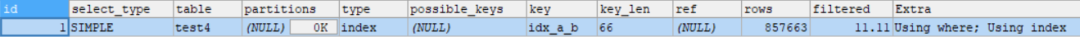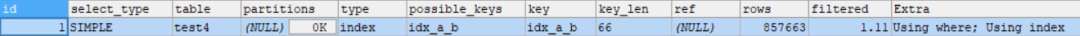 在 test4 这张表上,我们建一个字段(a,b)的复合索引。 BETWEEN AND 语句是可以用最左前缀原则的。如果我们执行下面 SQL: