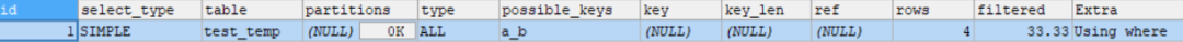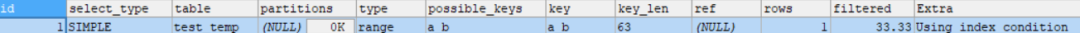 EXPLAIN SELECT * FROM test_temp WHERE a >= 10 AND a <= 50 AND b < 50;1.