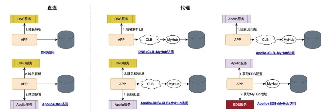 这种快速迭代的业务节奏,在早期有效支撑了业务创新,但由于缺乏统一的长期架构规划,数据库接入方式逐渐演变为多路径并行的局面,带来了后续的治理复杂性和技术债务: