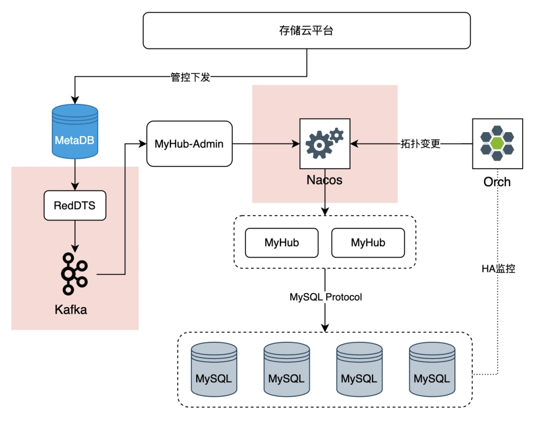 4. 配置管理分布式化:不依赖中心化的配置中心,集群配置通过数据库实现,下沉到各套集群并结合中心化 metaDB 实现双备,可靠性高