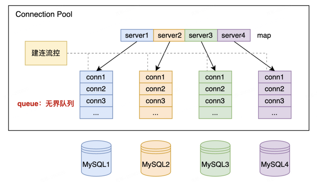 连接可控:刚性连接池,最大连接数可配,彻底杜绝DB被打爆