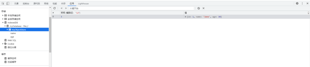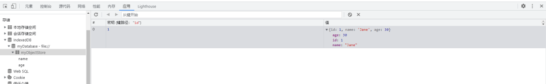 在右侧数据列表里,可以直接看到存储的 JavaScript 对象。