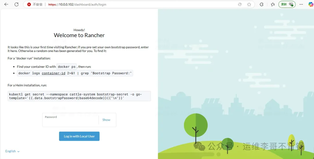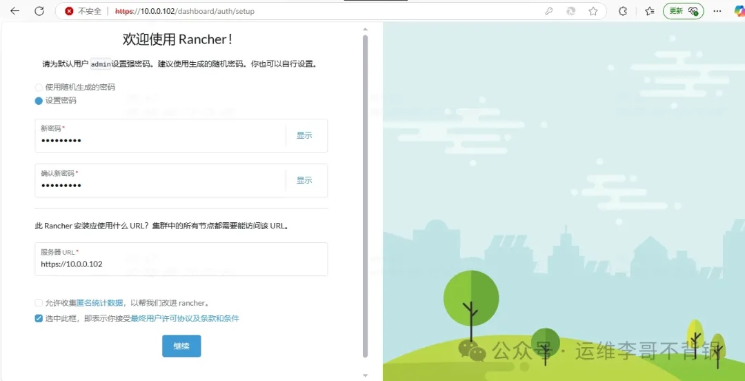 设置新密码:最少需要12个字符,我设置为Rancher@1234