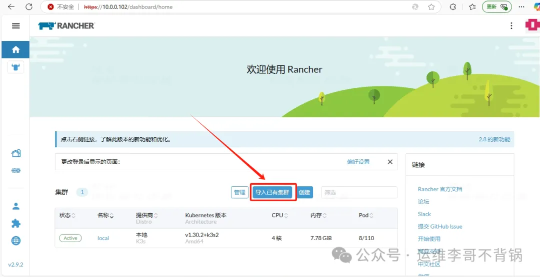 实战:Rancher 部署并接入已有 Kubernetes 集群
