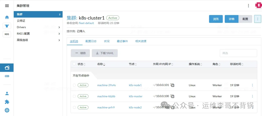 等几分钟再查看,已经将现有k8s集群成功导入: