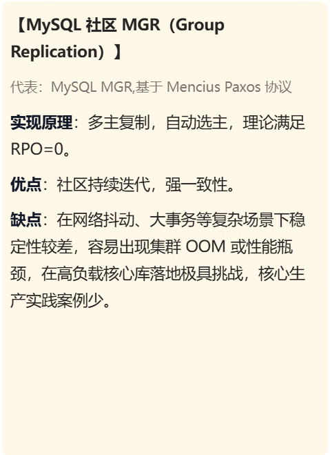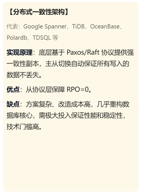🙋 业内主流OLTP数据库如何实现 RPO=0?业内主流方案主要分为以下三种:
