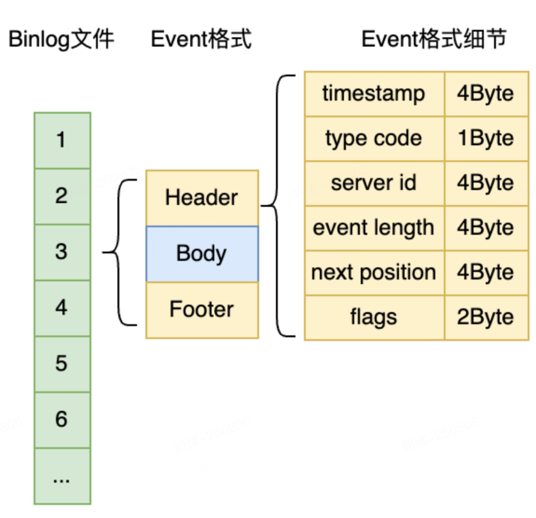 BinlogServer->Master,Slave->BinlogServer进行认证、连接和状态获取SQLAdmin->BinlogServer管理线程的认证和连接Admin->BinlogServer发送的COM命令BinlogServer->Admin发送的ResultSetMaster->BinlogServer, BinlogServer->Slave发送的Event格式这里需要按照MySQL协议规定的注册、握手、COM格式、ResultSet格式以及EVENT格式处理, 对于协议的发送将复用MySQL Client的库,但是协议解析和数据包封装需要Binlog Server处理。以Binlog为例,其基本格式如下图所示,需要分别对Header和Footer处理,提取各个字段。