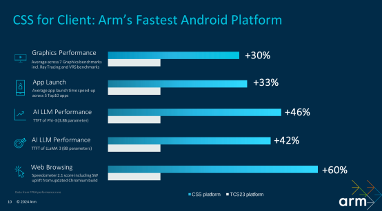 据Arm终端事业部产品管理总监Steve Hopper介绍,Arm终端 CSS 聚焦于实现平台能力的重大飞跃,以继续突破高端移动体验的极限。在这一代产品中,Arm优先考虑四个关键领域:一是突破性能边界以处理要求苛刻的安卓实际工作负载;二是针对生成式 AI 以及更广泛的 AI/ML和计算机视觉工作负载提高性能;三是持续专注于实现两位数的系统能效提升;四是扩展平台以获得更高的性能点,满足新一代AI PC设备的需求(包括笔记本电脑和平板电脑)。