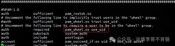 # 修改前备份 cp /etc/pam.d/su /etc/pam.d/su_bak vim /etc/pam.d/su # 添加 auth sufficient pam_rootok.so auth required pam_wheel.so use_uid # 将允许su的用户加入wheel组 usermod -G wheel $username1.2.3.4.5.6.7.8.9.10.