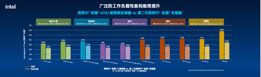 不仅如此,英特尔®️ 至强®️ 6能效核处理器还具备更大的内存带宽和丰富的 I/O,并内置多款加速引擎,为需要高并行处理和大吞吐量的云级工作负载,如Web托管、水平扩展数据库、数据分析和AI等,带来更高的性能和能效,并确保在峰值负载下也可满足服务等级协议(SLA)要求,同时维持性能稳定。