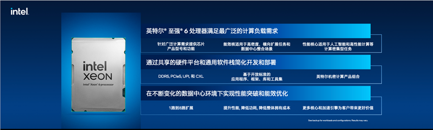 拥抱数据中心云化以及AI应用的新机遇,为高质量发展提供高效、绿色低碳的算力底座是计算基础设施迈向智能新时代的重要方向。英特尔®️ 至强®️ 6能效核处理器以创新架构,通过提升数据中心的性能和能效并降低成本,助其应对不断变化的商业环境,为用户打造更丰富、更优质的服务。针对AI工作负载的高算力需求,英特尔计划在今年推出更高性能的性能核(P-core)版本。借助英特尔® 至强® 6处理器的E-core和P-core的兼容性,单一平台便能满足出色的AI性能、高能效和云端的可扩展性,帮助数据中心高效满足不断增长的多元化需求。