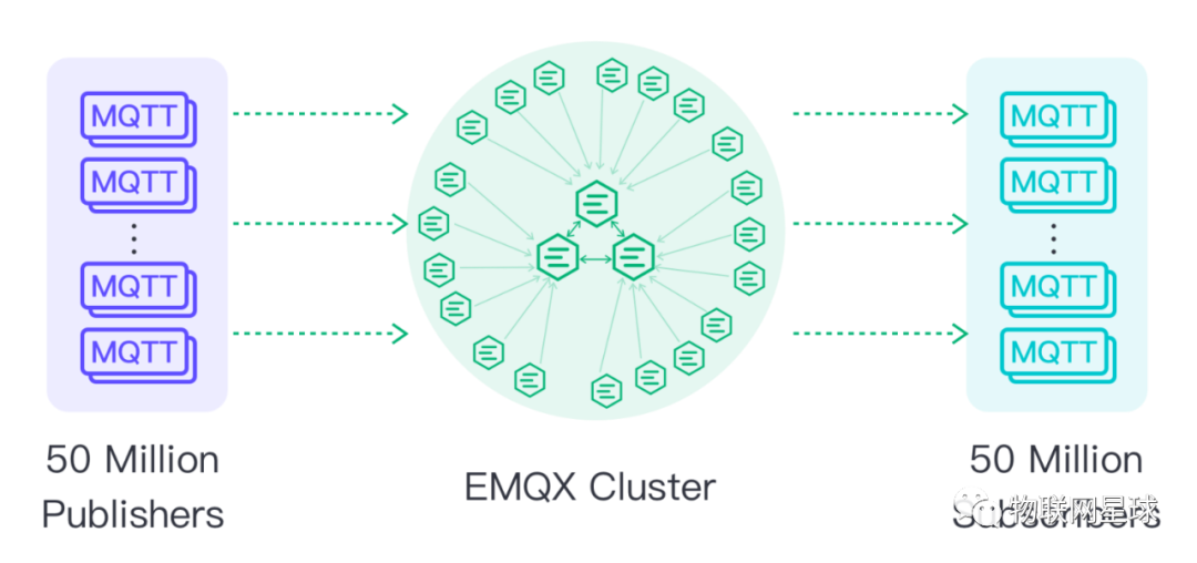 1.Mria 集群架构EMQX 5.0 支持全新的 Mria 集群架构,该架构极大地提高了 EMQX 的水平扩展性,使其单个集群能够轻松支持高达 1 亿个 MQTT 连接。这使得 EMQX 5.0 在全球范围内成为最具扩展性的 MQTT Broker。