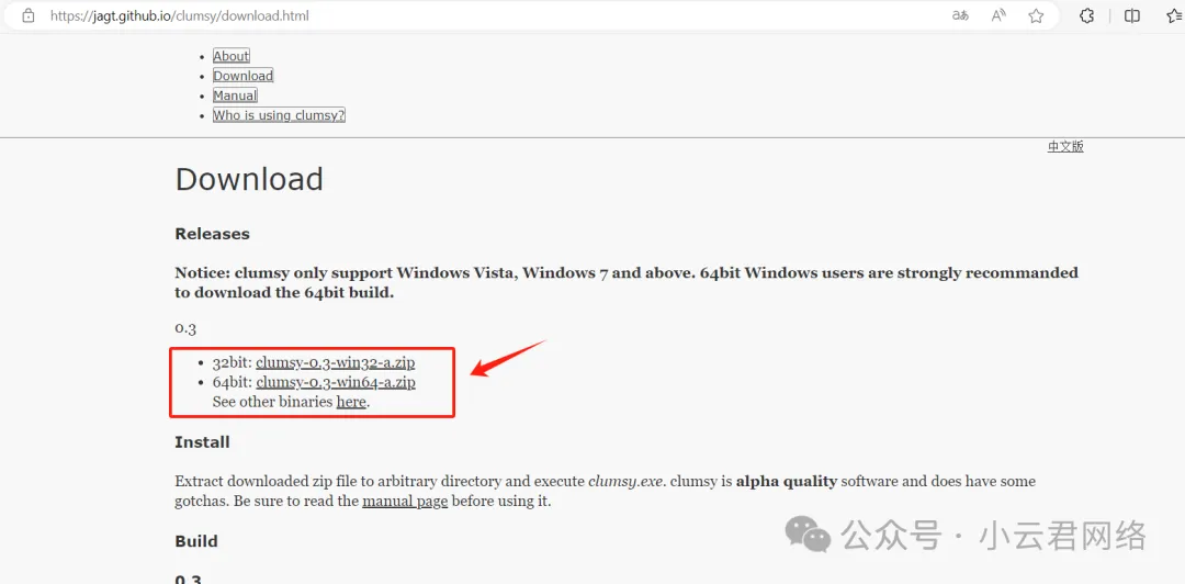 1. 获取安装包可以从 GitHub 仓库进行下载,地址:https://jagt.github.io/clumsy/download.html