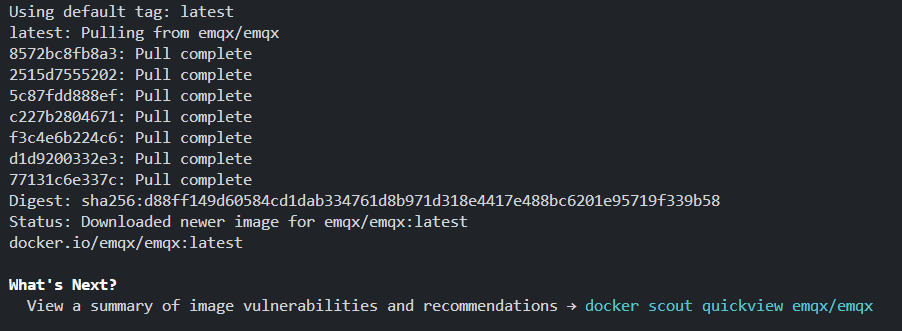 docker run -d --name emqx -p 1883:1883 -p 8083:8083 -p 8084:8084 -p 8883:8883 -p 18083:18083 emqx/emqx:latest1.