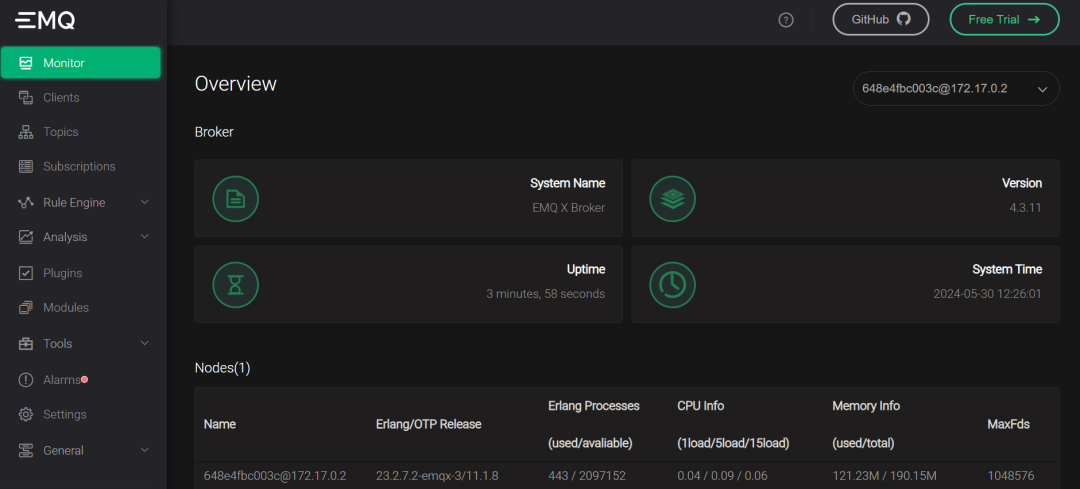 安装完成后,打开浏览器,并在地址栏中输入 http://localhost:18083以访问 EMQX 仪表板,您可以从那里连接到客户端或检查运行状态。