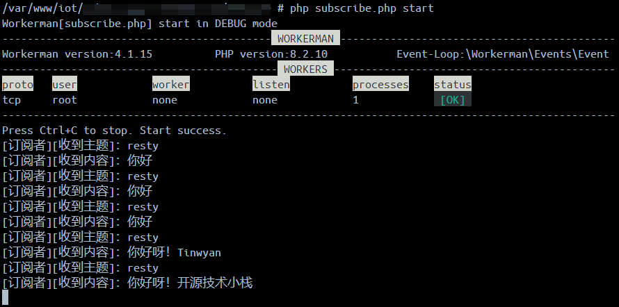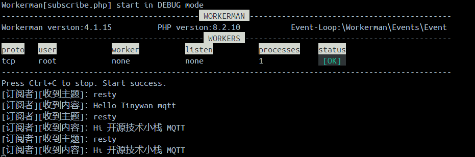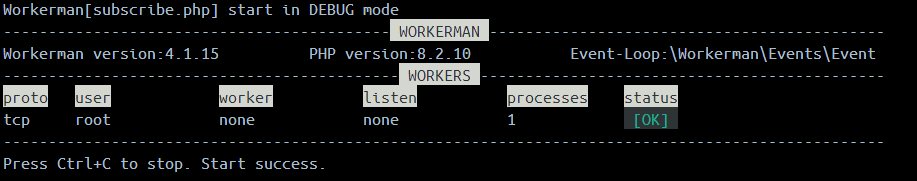命令行运行 php subscribe.php start 启动:
