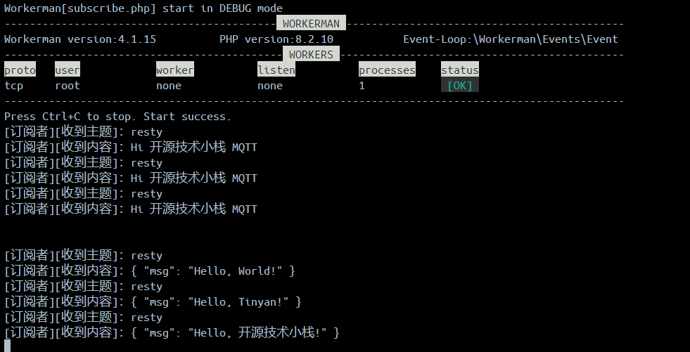 echo [订阅者][收到主题]: . $topic . PHP_EOL;