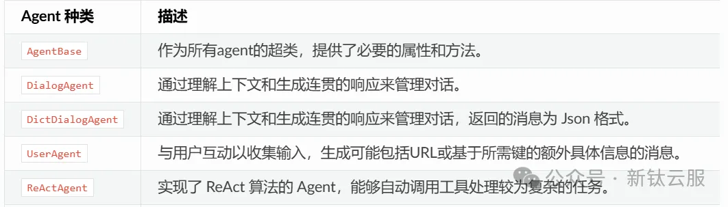 以上使用的是Agentscope中的DialogAgent,可以完成类似客服机器人的需求,除此之外,他还有ReActAgent 这种能够调用工具方法,可以根据我们的需求自行开发的agent,可以处理较为复杂的任务。